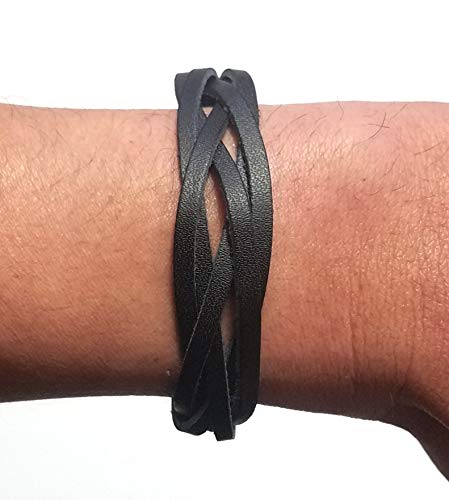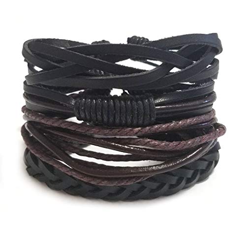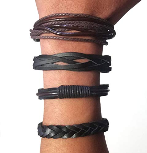 Generic - JM Future 4 Pcs Set Leather Braided Cuff Wrap Bracelet Wristband Handmade Jewelry for Men Women Adjustable Black and Brown, leather,
