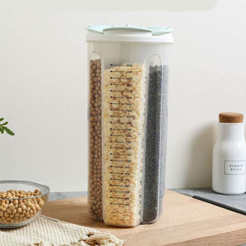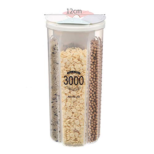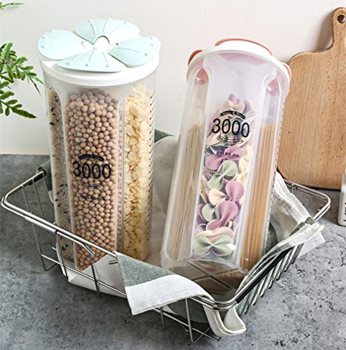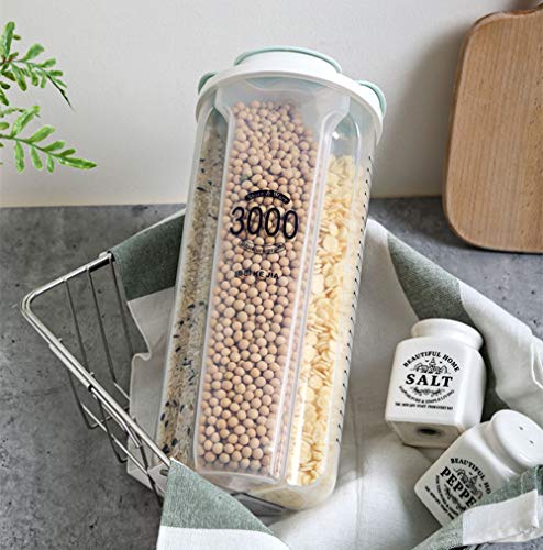 JMAHM - Cereal Dispensers Tubs Food Storage Containers Pasta Airtight Clear Plastic with Multiple Spaces Calibration Keep Food Fresh Dry (3000ml / 4 Grid, Mix Colors)