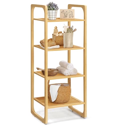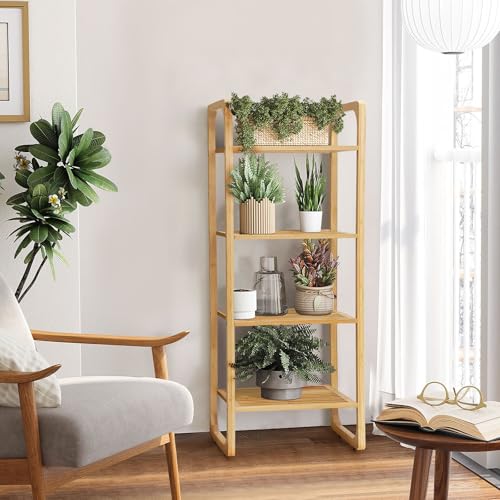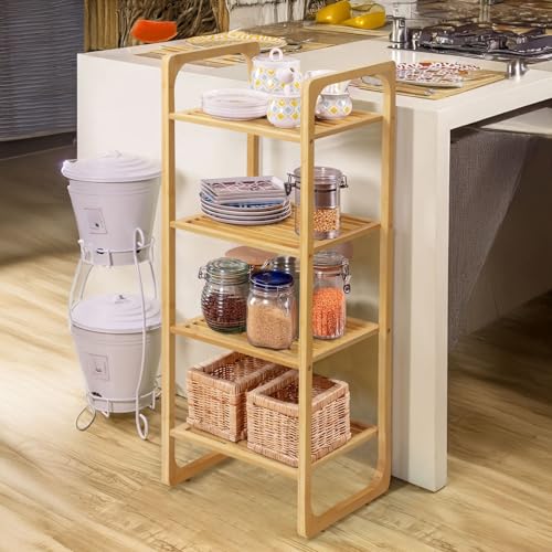 JMLHMXC - JMLHMXC 4-Tier Bamboo Shelf,Bathroom Bookshelf Plant Stand, Freestanding Storage Rack Organizer, Multifunctional Shelving Unit, for Kitchen, Living Room, Bedroom