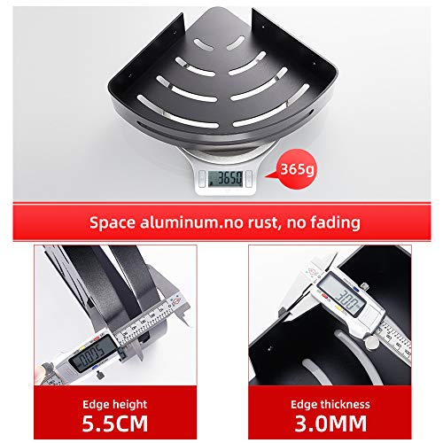 - Space Aluminum Corner shelf: The shower shelf is made of durable aerospace aluminum material. Frequently treated by anodizing process, it has strong corrosion & scratches resistance, waterproof and rustproof. Sandblasting process can clean up the tiny burrs on the surface, making the bathroom shelf more smooth,and more beautiful appearance.Say goodbye to the sharp edge.