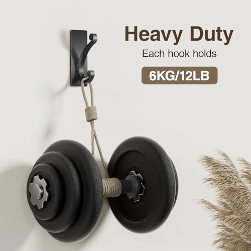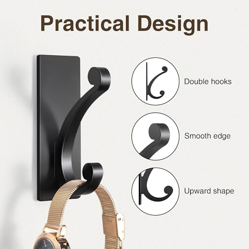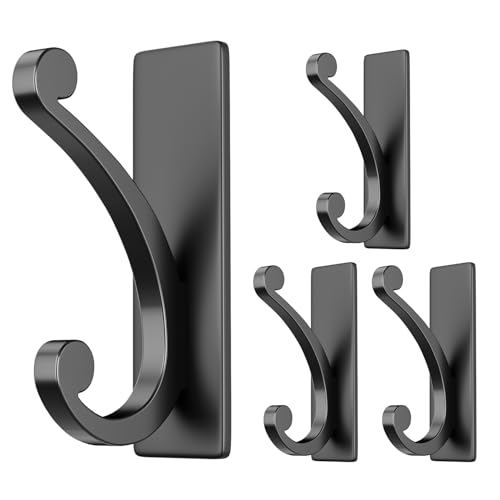 jockcaras - Adhesive Coat Hooks for Door: 5KG Designer Wall Hook for Hanging Towel, Bathroom, Heavy Duty Stainless Stick on Hanger, Black, 4-Pack