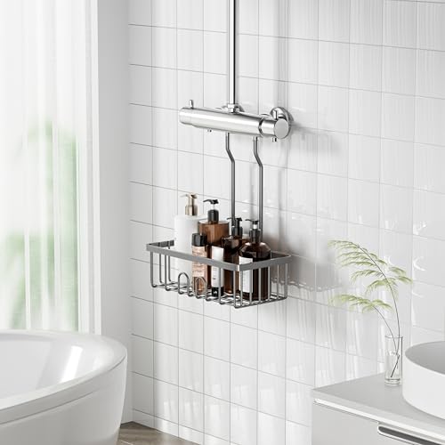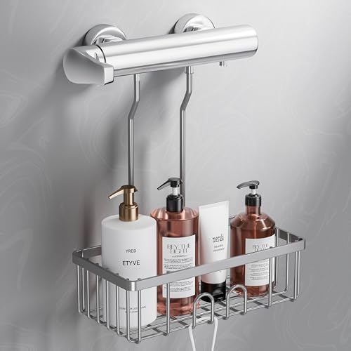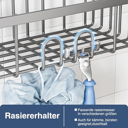 - ✔ SCRATCH RESISTANT DESIGN: The shower shelf hooks are covered with PVC plastic sleeves to effectively protect faucets.