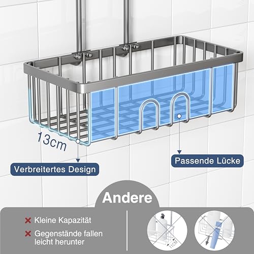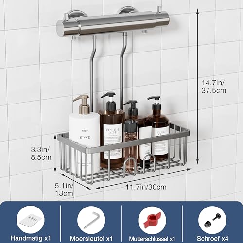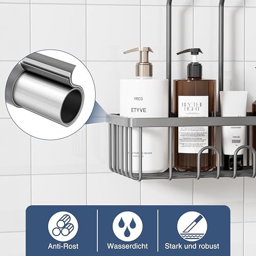 jockcaras - Shower Shelf for Hanging Shower Basket Shower Shelf Bathroom Shampoo Holder for Shower No Drilling 30 x 13 x 37.5 cm Grey