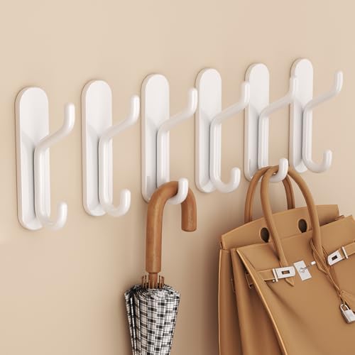 jockcaras - Wall Hooks Towel Hanging Hook: Adhesive Heavy Duty Coat Hanger - Sticky Bathroom Shower Hook for Robe and Clothes White Aluminum 6 PCS