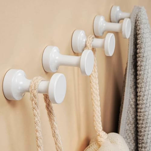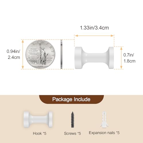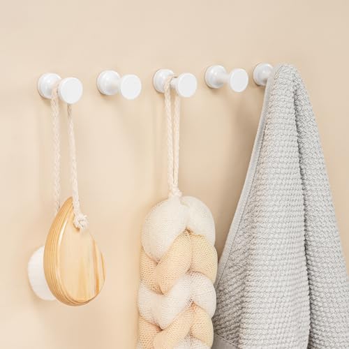 jockcaras - خطاف مقبض حائط لتعليق المنشفة - صغير بقطر 0.8 انش 10 باوند للليفة والرداء والمعطف والقبعة والمفاتيح والحمام والدش الداخلي والرف ابيض 5 قطع براغي متضمنة الألومنيوم