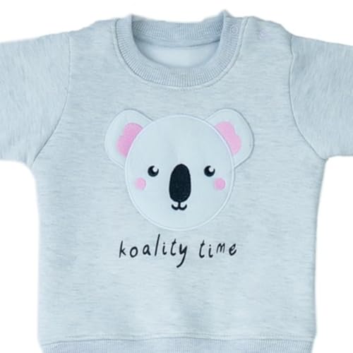 Jockey M M - طقم بيجامة قطن مكون من سويت شيرت بأكمام طويلة وبنطلون مطرز برسمة كوالا للبنات من جوكي ام ام، لون رمادي وروز، لعمر 4-8 شهور