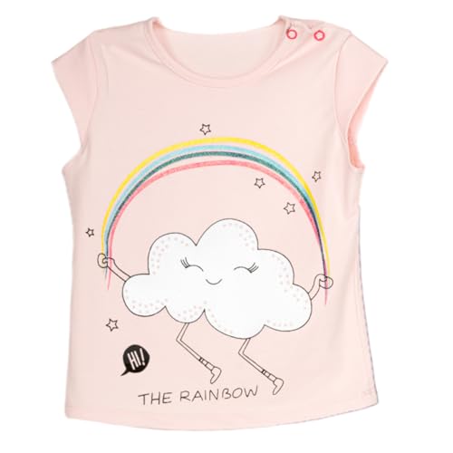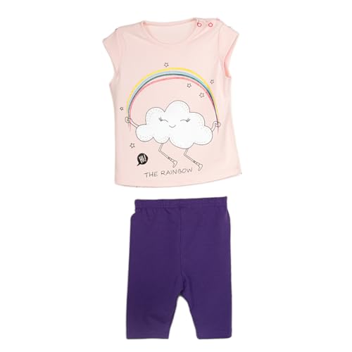 Jockey M M - طقم من القطن مكون من تيشيرت بدون أكمام وشورت بطبعة سحابة للبنات من جوكي إم إم، قطعتين، لون سيمون وأرجواني، لعمر 5 إلى 9 أشهر