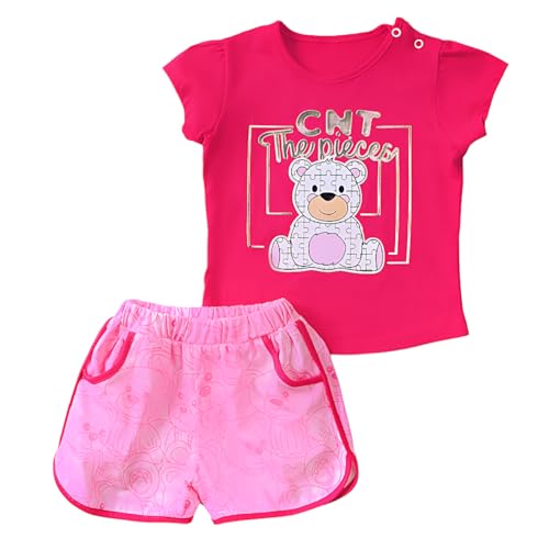 Jockey M M - Girls Set Of 2 Pieces Half Sleeves T-Shirt&Shorts Printed Bear Pajama Set