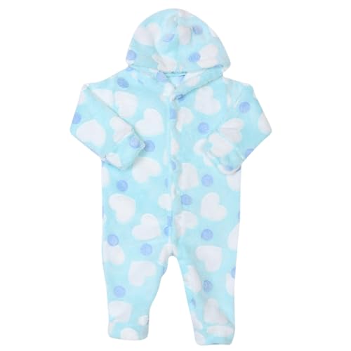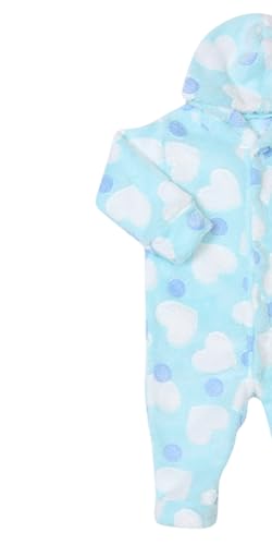 Jockey M M - سالوبيت بكباسين بولار بغطاء للرأس واكمام طويلة مطبوع عليه قلوب للجنسين من جوكي ام ام - ازرق فاتح، 0-3 شهور