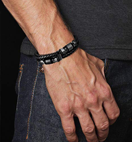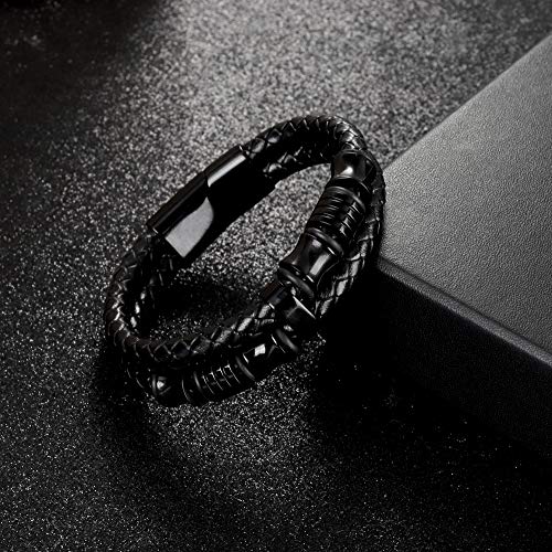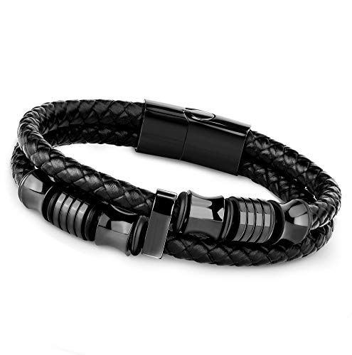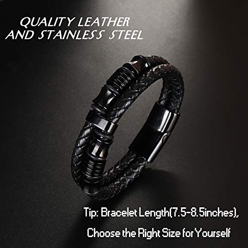 JOERICA - JOERICA Stainless Steel Magnetic Clasp Leather Bracelets for Men Cuff Bracelet 7.5-8.5inches, 7.5 inches, Leather
