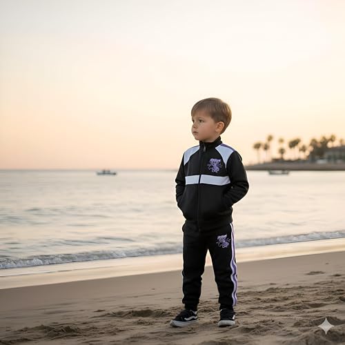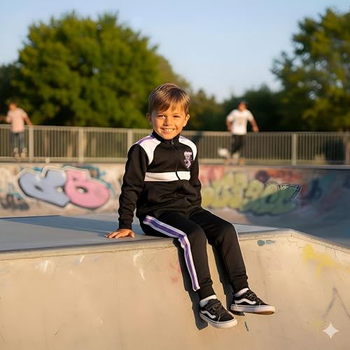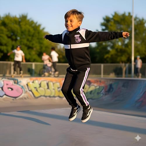 Generic - طقم الركض - ملابس رياضية بينك دراجون من قطعتين تتميز ببدلة رياضية باللونين الاسود والابيض وسترة مخططة بسوستة بلون ارجواني لنمط الحياة النشط