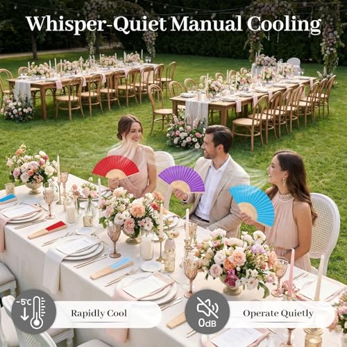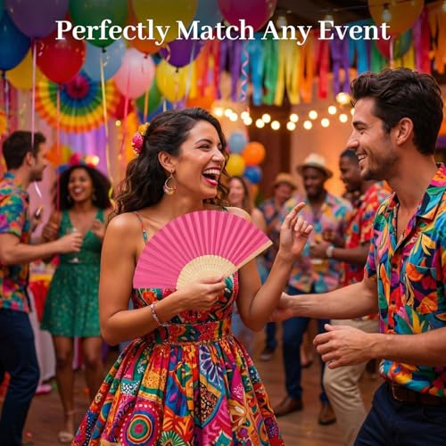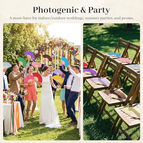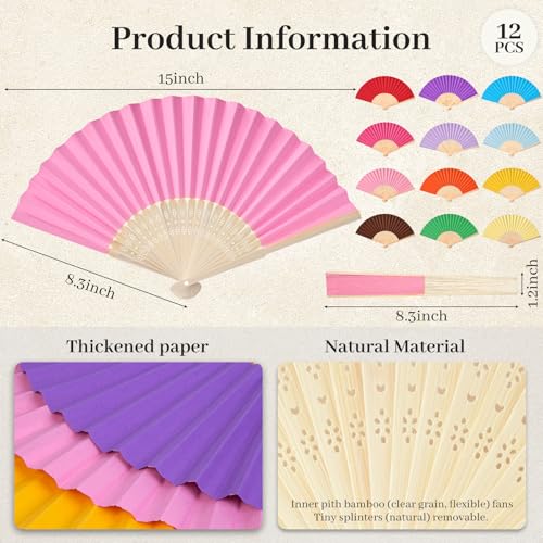 JOHOUSE - مراوح ورقية محمولة باليد من الخيزران قابلة للطي من جو هاوس، مروحة قابلة للطي باليد لهدايا الزفاف وهدايا الحفلات والديكور اليدوي (12 قطعة، متعددة الألوان)
