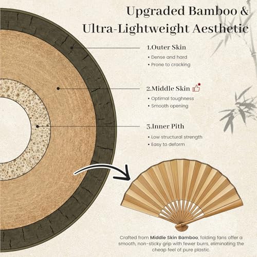 - جودة فائقة - المروحة الورقية المحمولة الخاصة بنا مصنوعة من ورق عالي الجودة، فهي قوية ومتينة، وليس من السهل تمزيقها. المقبض مصنوع من الخيزران، ويصعب كسره، وهو مصمم للاستخدام طويل الأمد والمتكرر.