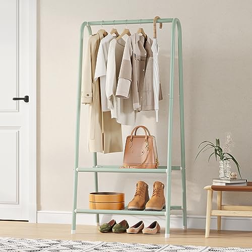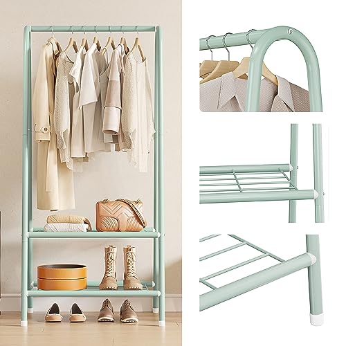 JOISCOPE - حامل معدن لتعليق الملابس بتصميم محمول من جويسكوب الجاكيتات متين وشديد التحمل مع رف مزدوج الطبقات لتخزين والأحذية مناسب لغرفة النوم والمكتب وغرفة المعيشة أخضر