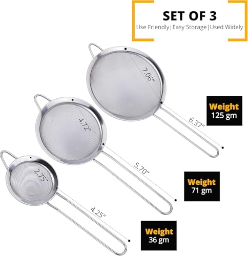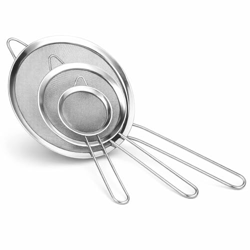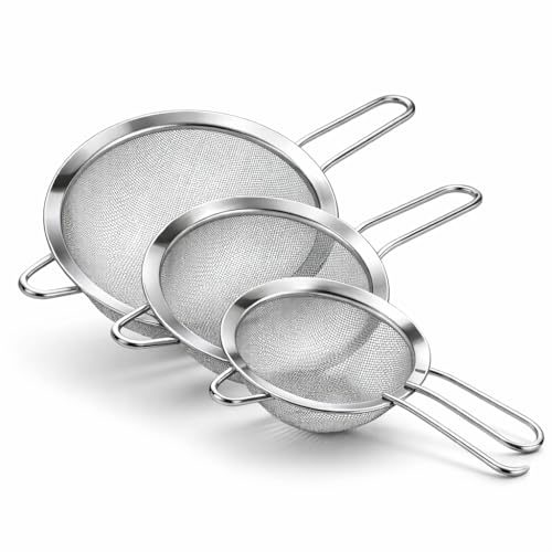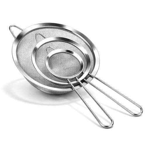 - 3 piece set: includes three mesh strainers in different sizes to meet various baking and cooking needs of flour filtering and fine components