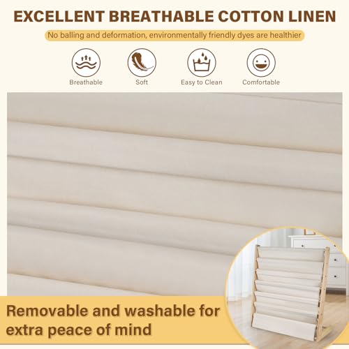 - [قابل للإزالة والتنظيف] صندوق تخزين قماشي متين مع رف كتب للأطفال، يمكنك فصله وتنظيفه مباشرة. تخلق بيئة قراءة نظيفة للأطفال، وسيكون الآباء أكثر راحة ويوفر مكانًا آمنًا للأطفال للعب.