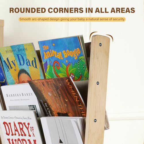 - [قوي وآمن] خشب الصنوبر الأصلي غير مطلي وله قدرة تحمل قوية. جميع زوايا رف كتب الأطفال الخشبي على شكل قوس لمنع خطر الإصابة الحادة للأطفال. آمنة وآمنة للاستخدام.