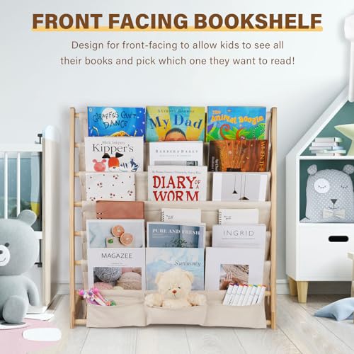 Jolensoy - رف كتب للاطفال منظم بلون بيج طبيعي لغرفة نوم الاطفال وغرفة اللعب وتخزين الالعاب خشب