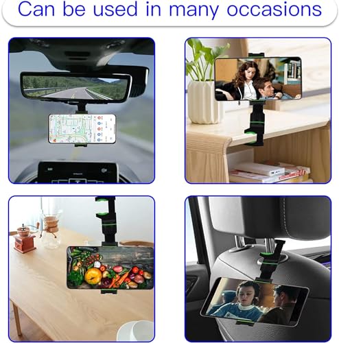 - 【Phone Holder Mount for Car & Home】This rear view mirror phone holder can be used not only in the middle rearview mirror, but also in car armrests and headrests. Or home use for cabinets, desks, kitchens and more.