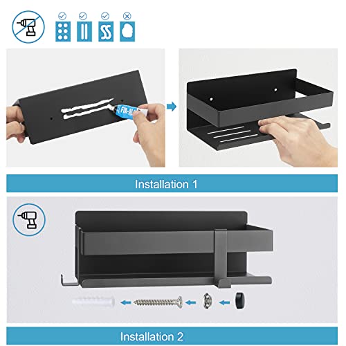 - سهل التركيب - يأتي رف الدش مع لاصق ذاتي للتركيب السريع. يأتي أيضًا مع براغي لتركيب الفتحات. يمكنك الاختيار من بين نوعين من طرق التركيب.