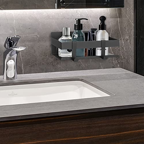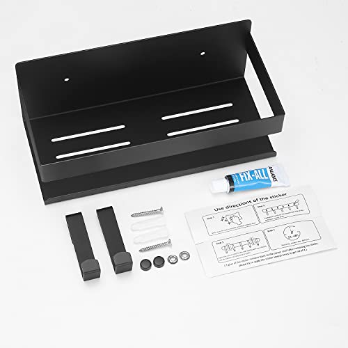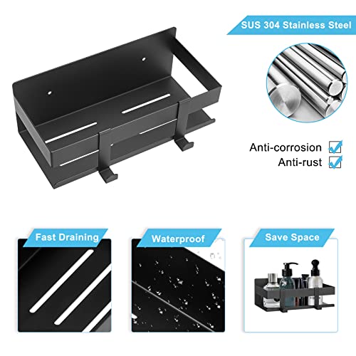 JOLY FANG - رف دش من جولي فانج لا يتطلب ثقب الستانلس ستيل مع خطافين سلة حمام مثبت على الحائط للحمام والمطبخ اسود