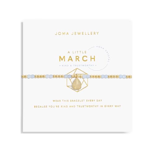 Joma Jewellery - Joma Jewellery A Little Birthstone Gold MARCH AQUA CRYSTAL Bracelet | 17.5cm Stretch Adjustable Wrist Stacking Bracelet