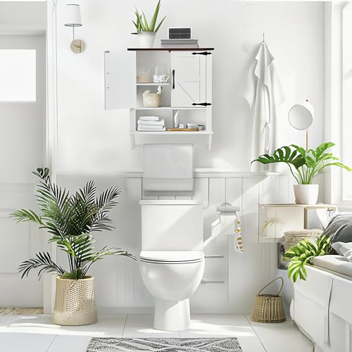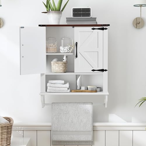 JOMEED - JOMEED Bathroom Wall Cabinet, Farmhouse Medicine Cabinet Storage with Doors and Adjustable Shelf, Over The Toilet Storage, White
