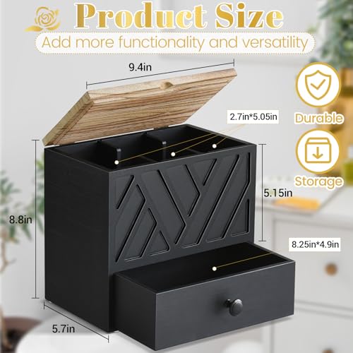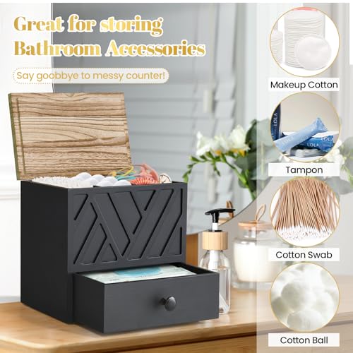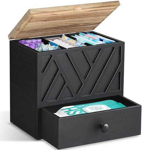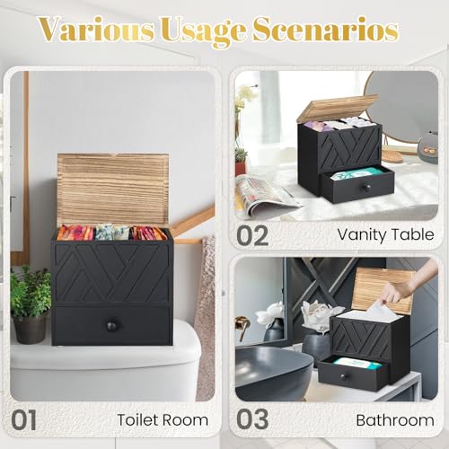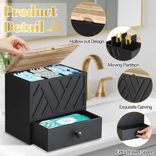 Jorkol - Tampon Holder for Bathroom Decor with Drawer, Feminine Product Organizer with Lid(Black)