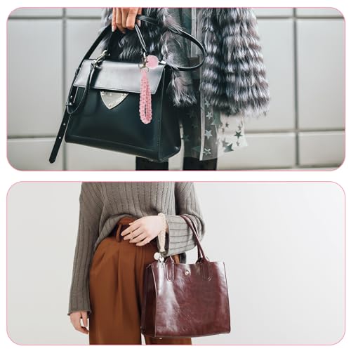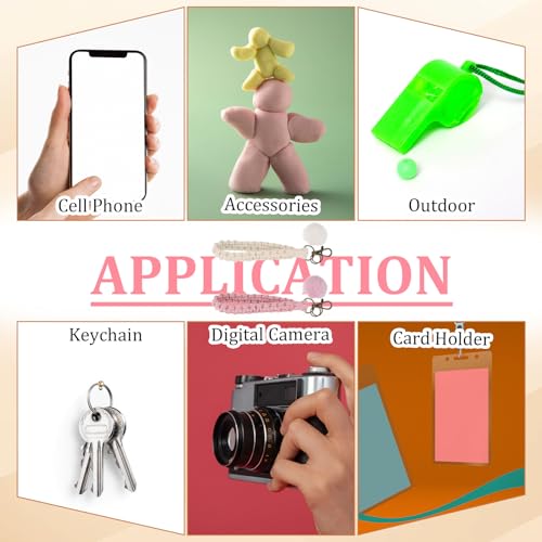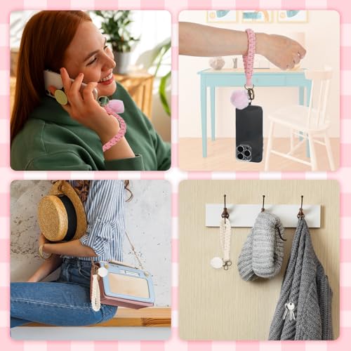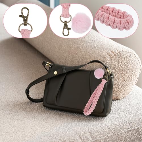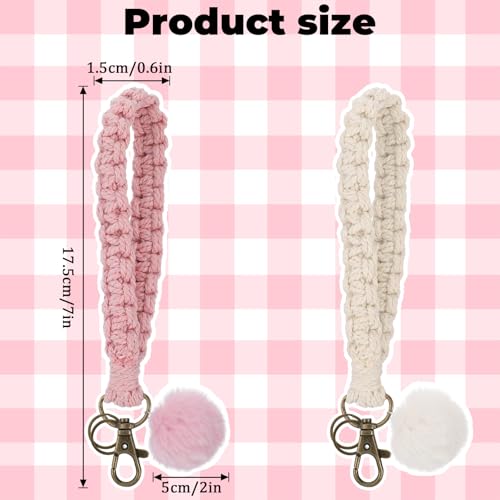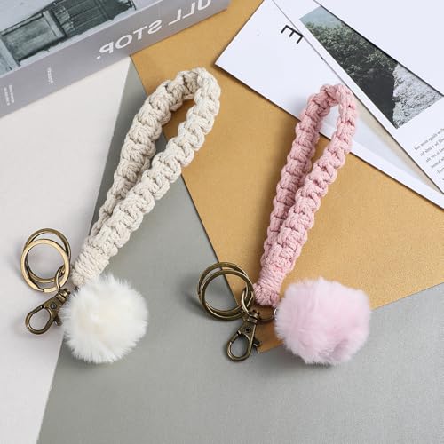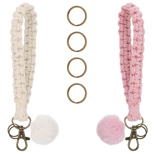 Josojoou - 2 PCS Macrame Lanyard for Keys, Boho Keychain, Portable Cochet Keychain with 2 Key Rings for Car Key Wallet (White, Pink)
