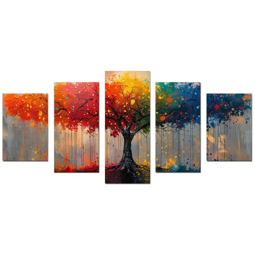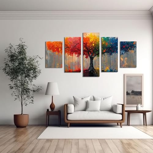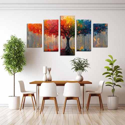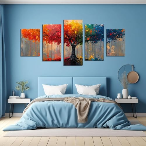 JOSUE - لوحة فنية ملونة بتصميم شجرة الحياة من جوسوي مكونة من 5 قطع، لوحة فنية مزخرفة باللون الاحمر والازرق، لوحة فنية للتعليق على الحائط