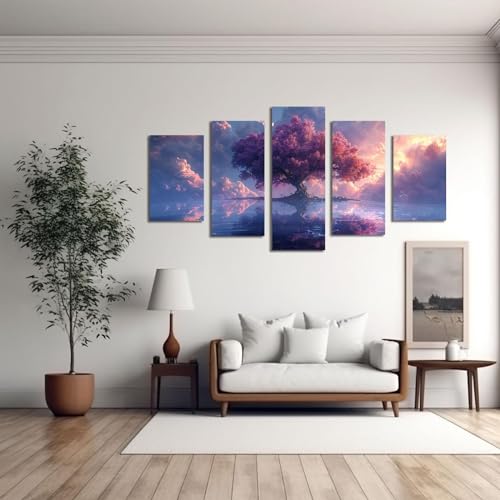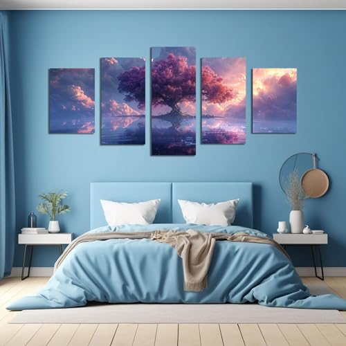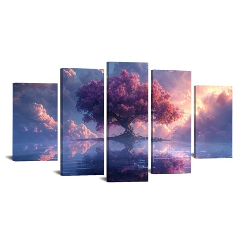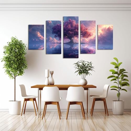 JOSUE - JOSUE Set Of 5 Large Wall Art Tree Of Life Pink Tree Sunset Canvas Large Canvas Wall Art,Pink Picture For Bedroom Living Room-50x100cm Framed