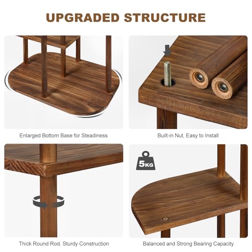 - UPGRADED STRUCTURE: Enlarged bottom base ensures stability for this multi-tiered wood plant stand and 4 staggered shelves well balanced; thick round stick provides good support for the shelf and is tightly connected to make the shelf more stable