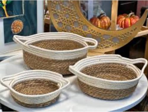 طقم باسكت رتان مجدول يد جوبير 3 قطع أنيقة متعددة الاستخدام | خامة طبيعية شكل شيك جداً B