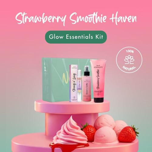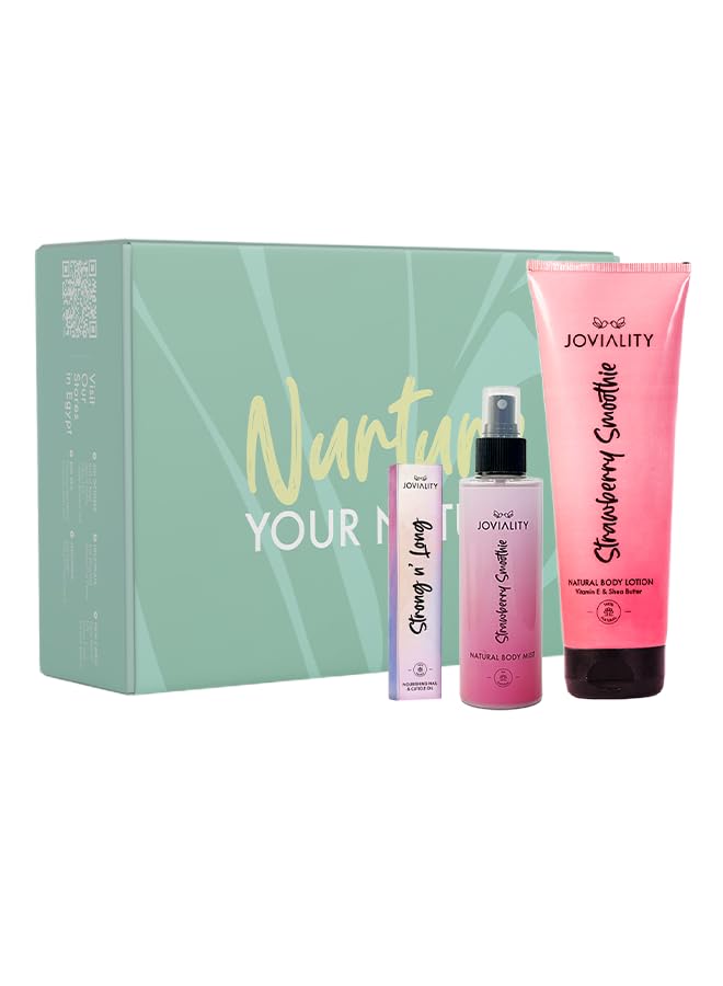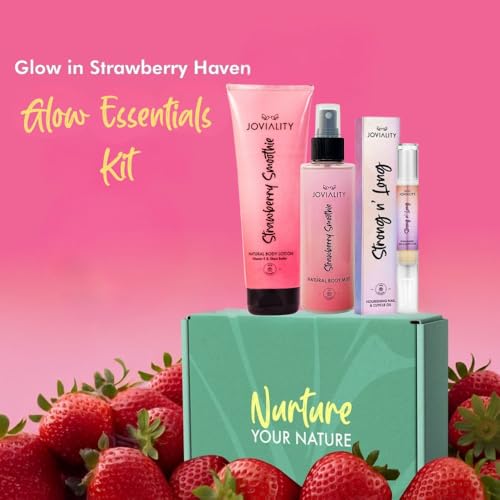 Joviality - Joviality Strawberry Glow Essentials Kit – Body Lotion + Body Mist + Nail & Cuticle Oil Set – Hydrating Strawberry Scented Skincare & Self Care Bundle - Mother's Day Gift