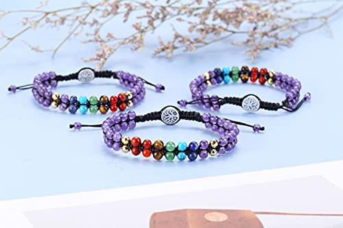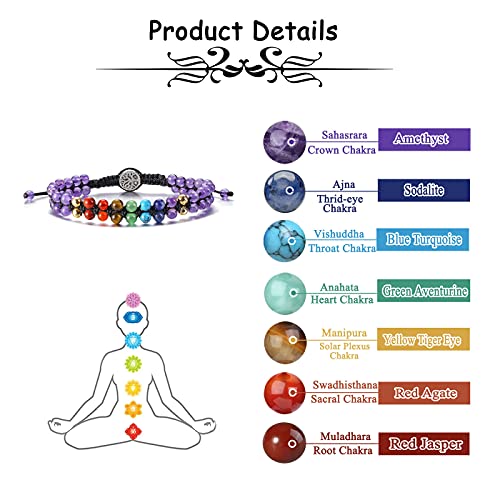Jovivi - سوار من خرز الشفاء الريكي 7 شقرا جوفيفي للنساء الاحجار الكريمة الطبيعية والقلق احجار اليوجا واحجار والمزينة بالخرز وسوار مضفر قابل للتعديل للرجال هدايا مجوهرات