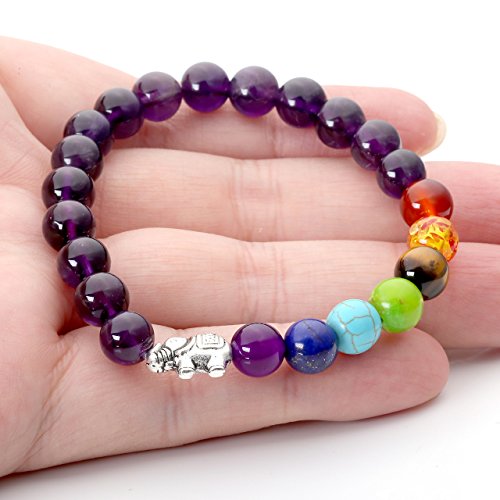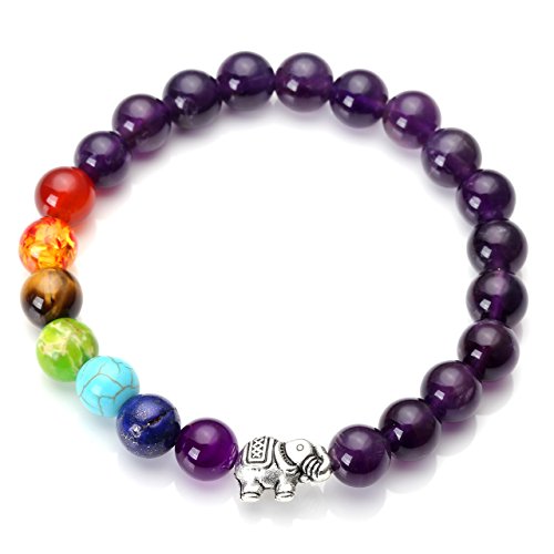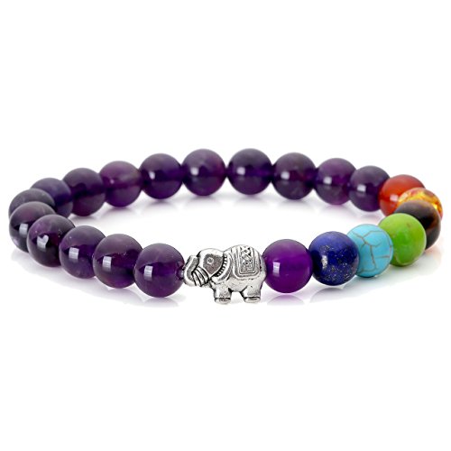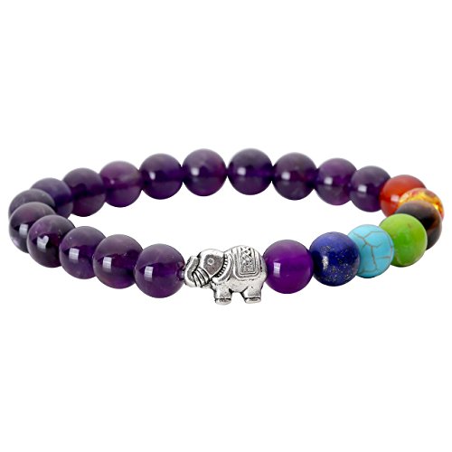Jovivi - سوار شاكرا 7 باحجار اميثيست لليوجا والتوازن والريكي والعلاج بدلاية فيل الحظ اكسسوار للنساء من جوفيفي, حجر
