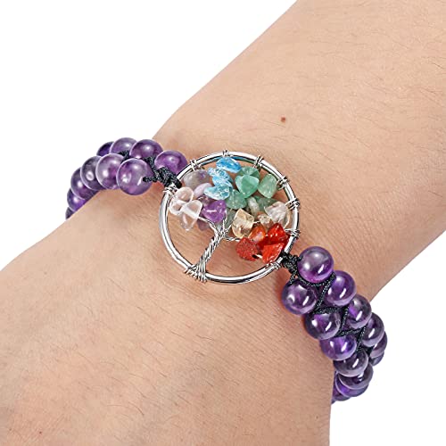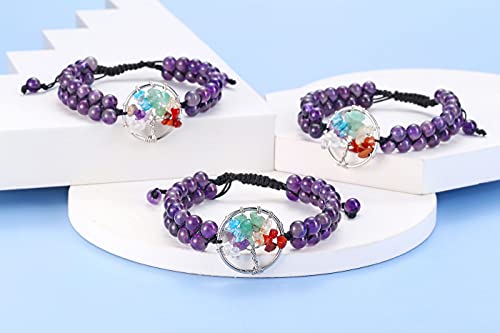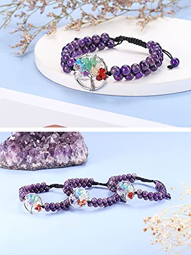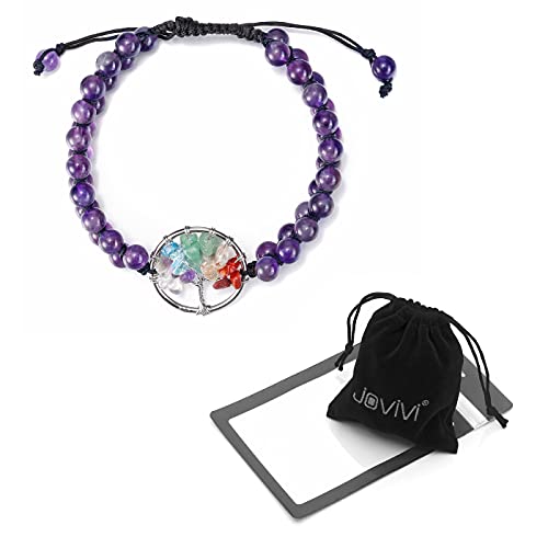 Jovivi - JOVIVI Amethyst Crystals Healing Gemstone Chakra Tree of Life Bracelet for Women Natural Purple Stones Reiki Anxiety Bead Yoga Meditation Bracelet Men Jewellery Protection Lucky Gifts