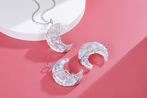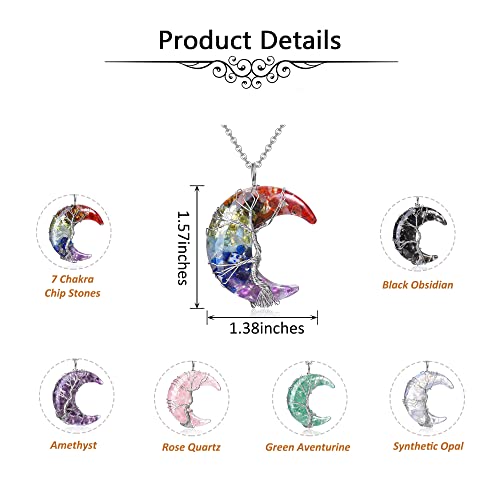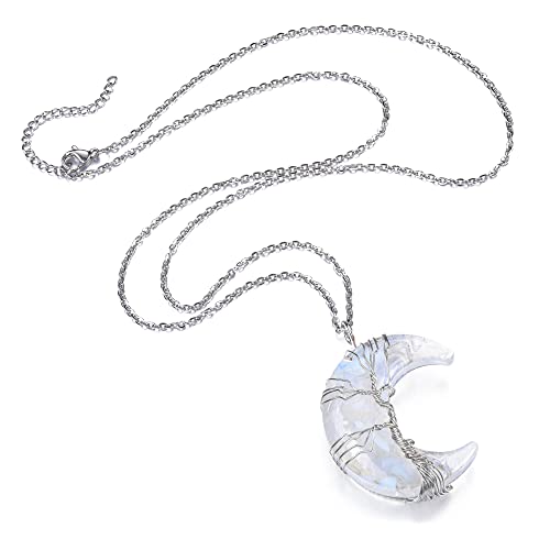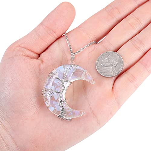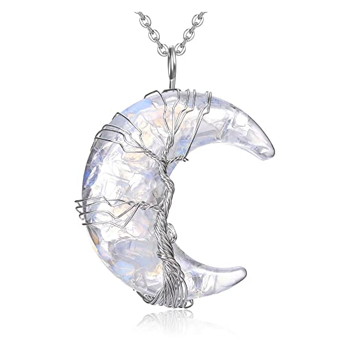 Jovivi - Jovivi Clear Quartz Crystal Necklace Tree of Life Wire Wrapped Crescent Moon Resin Pendant Reiki Healing Crystals Chip Gemstone Necklaces for Women Men, Metal