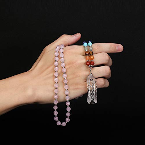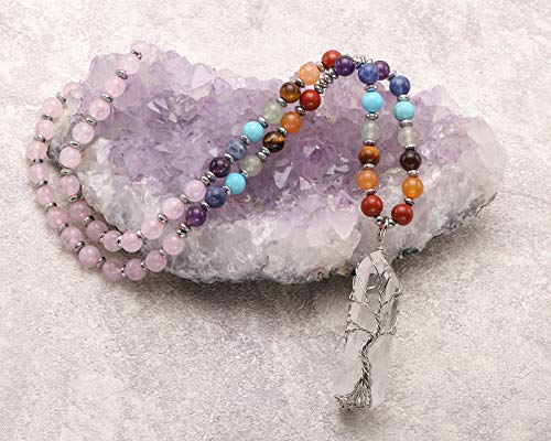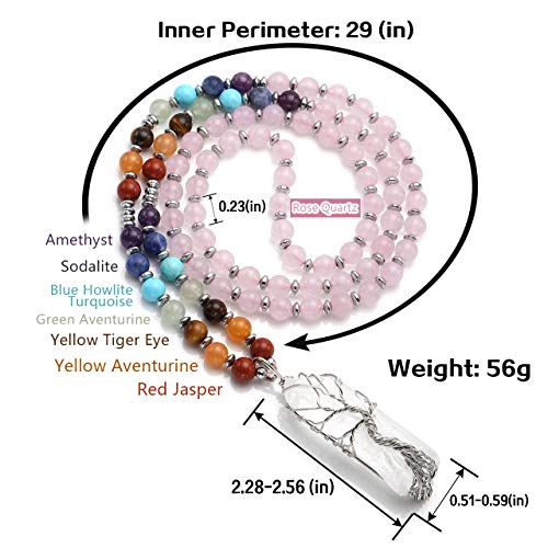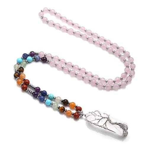 Jovivi - سلسلة بكريستالات 7 شاكرات استشفائية طبيعية ملفوفة بسلك من جوفيفي حجر كوارتز شفاف وشجرة الحياة لموازنة الطاقة والاستشفاء بتصميم مدبب للنساء للبالغين الجنسين للرجال