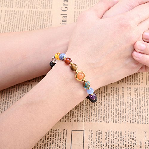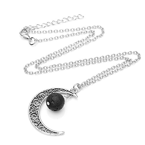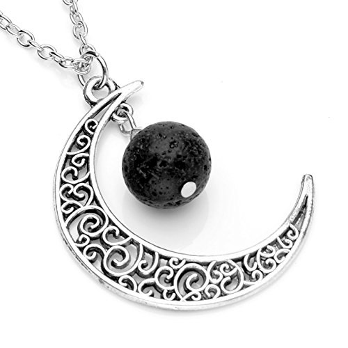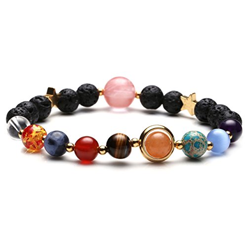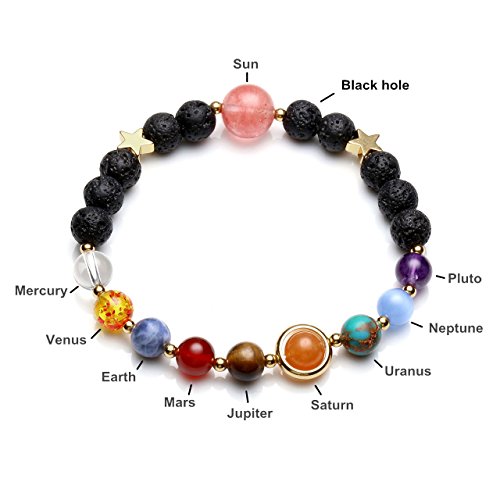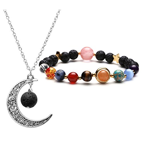Jovivi - Jovivi Solar System Bracelet Universe Galaxy The Nine Planets Chakra Bracelet Lava Stone Aromatherapy Essential Oil Diffuser Necklace - Crescent Moon Jewellery