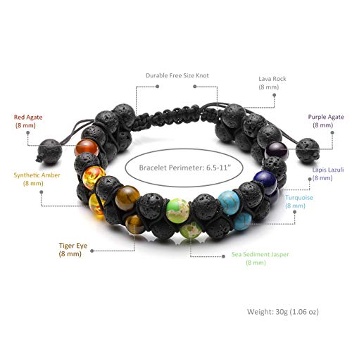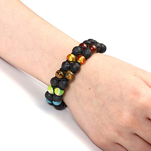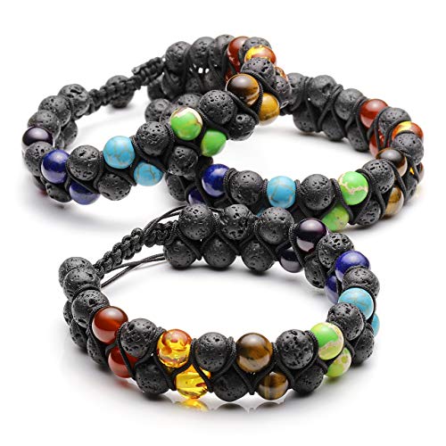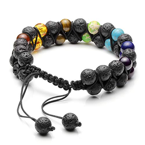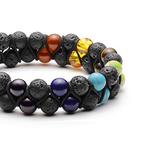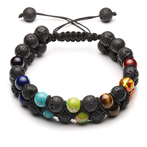 Generic - JOVIVI Women Men Natural 7 Chakra Lava Bead Bracelet Crystals Gemstones Beads Aromatherapy Essential Oil Diffuser Bracelet Adjustable,Reiki Healing Anxiety Relief, 1 Count (Pack of 1), Leather