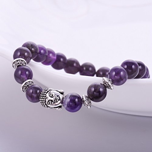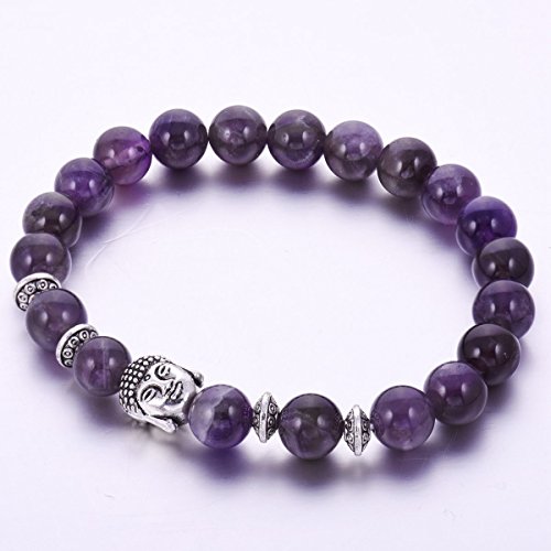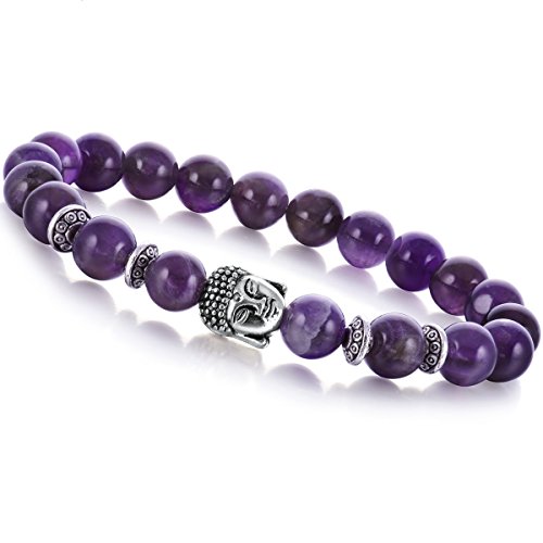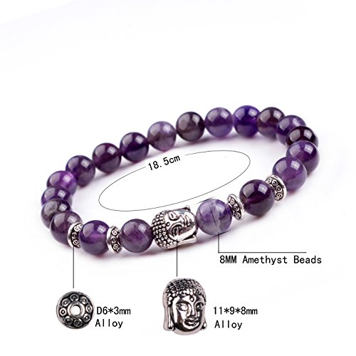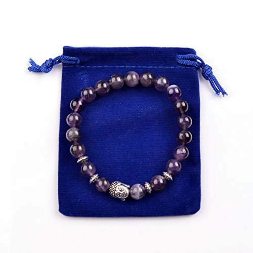 JOYA GIFT - Buddha 8mm Beaded Bracelet for Women Men Gemstone Chakra Bracelet Jewelry, 7 inch, Crystal