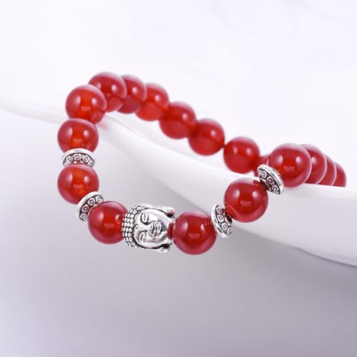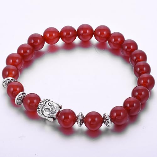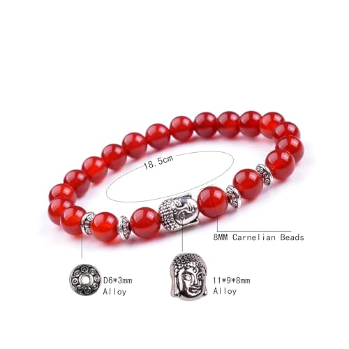 JOYA GIFT - Buddha 8mm Beaded Bracelet for Women Men Gemstone Chakra Bracelet Jewelry for Birthday Gifts, 8 inch, Crystal, carnelian