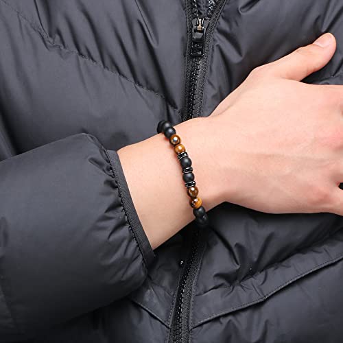 JoycuFF - جويكوف سوار عين النمر الطبيعي للرجال والمراهقين 8 ملم فريد من نوعه لعيد الميلاد والكريسماس وعيد الاب الحب مجوهرات رائعة