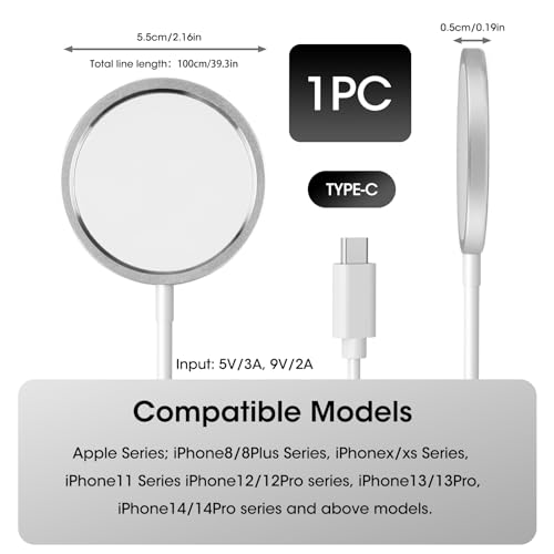 - 【Compatible with Various QI Devices】This magnetic charger is compatible with a variety of mobile phones, including iPhone 15/14/13/12, providing convenience to charge various devices.
