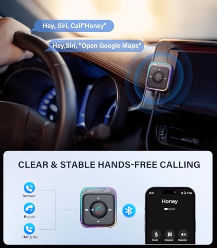 - Plug & Play with Universal Compatibility: Easy setup via 3.5 mm AUX and USB power – works with car stereos, home audio systems, TVs, PCs, and more. Auto-reconnect and dual-device pairing supported.