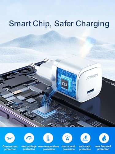 Joyroom - Joyroom JR-TCF02 PD 20W Mini Intelligent EU Fast Charger with USB-C to USB-C Cable, 1 Meter Length, White|12 Months Warranty