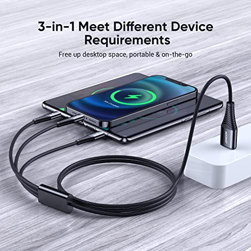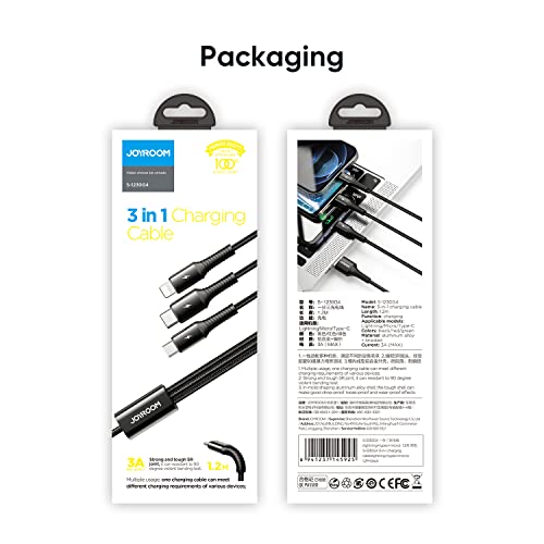 Joyroom - Joyroom Multi Charging Cable, Nylon Braided 3 in 1, Cable Fast Charging Cord with Type-C, Micro USB and IP Port, Compatible with all Mobile Phones
