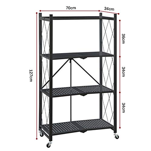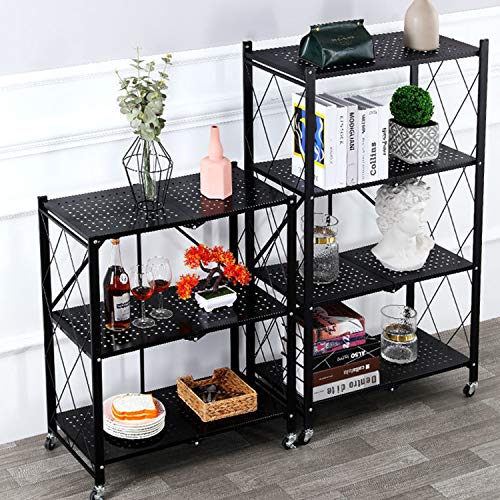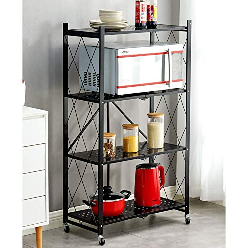 JOYSEUS - JOYSEUS 4-Tire Kitchen Microwave Racks Shelving Storage Unit Foldable Bread Racks, Storage Racks, Trolleys, Metal Organizer Wire Rack for Home Kitchen (Black, 4 Layer)
