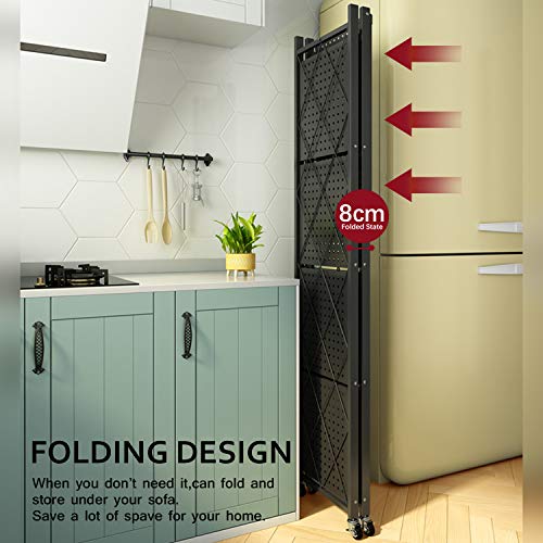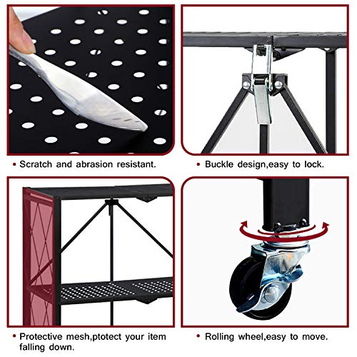 - 【Easy To Move And Lock】Folding Storage Shelves Features 4 easy-glide durable wheels with 360°rotation.Easy to Move,It Can be Used as a rooling utility cart.2 wheels with brakes make the rolling kitchen cart more stable don't worry about slipping.The mesh racks on both sides can also prevent objects from falling